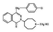 Астелин (азеластинов хидрохлорид) Назален спрей 137 микрограма (MCG) е антихистамин, формулиран като разтвор на дозирано спрей за интраназално приложение. Азеластинният хидрохлорид се среща като бял почти без мирис кристален прах с горчив вкус. Той има молекулно тегло 418,37. Той е пестеливо разтворим във воден метанол и пропилен гликол и леко разтворим в етанол октанол и глицерин. Той има точка на топене от около 225 ° С, а рН на наситен разтвор е между 5,0 и 5,4. Химическото му наименование е (±) -1- (2H) -фталазинон4-[(4Хлорофенил) метил] -2- (хексахидро-1-метил-1Н-азепин-4-ил)-монохидрохлорид. Молекулната му формула е c 22 H 24 Cln 3 O • HCl със следната химическа структура: