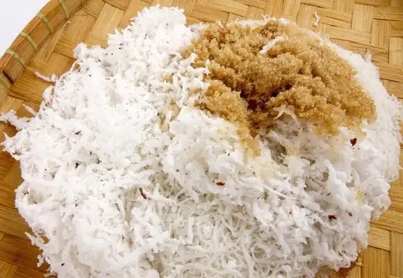 Юфката се увива в кърпа и след това се задушава, придавайки им тънката и подобна на конци форма. Вече е доста сладък благодарение на кокосовото мляко, но ако искате да го направите по-сладък, можете да поръсите малко палмова захар (Gula Melaka) отгоре.