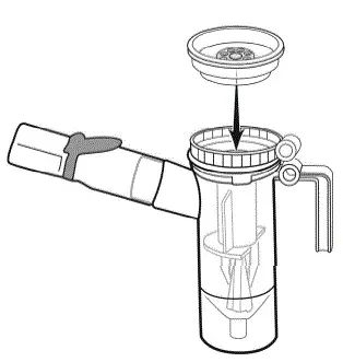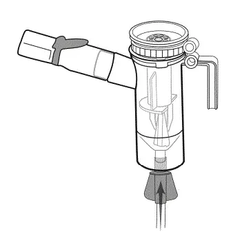 Стъпка 8: Твърдо натиснете капачката на инспираторния клапан направо върху върха на чашата на пулверизатора (виж Фигура i ). The Inspiratилиy Valve Cap should fit tightly.