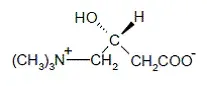 Химическото наименование на левокарнитин е 3-карбокси-2 ( R ) -Хидрокси-Nnn-триметил-1-пропанаминиев вътрешна сол. Левокарнитинът е бял кристален хигроскопски прах. Той е лесно разтворим във воден горещ алкохол и неразтворим в ацетон. Специфичното въртене на левокарнитин е между -29 ° и -32 °. Химическата му структура е: