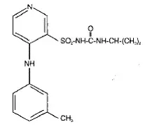 DEMADEX® (torsemide) is a diuretic of the pyridine-sulfonylurea class. Its chemical name is 1-isopropyl-3 [(4-m-toluidino-3-pyridyl) sulfonyl] urea and its structural formula is: