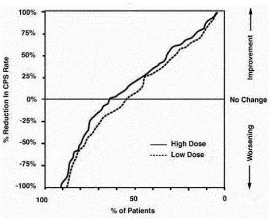 Вероятността за тромбоцитопения се увеличава значително при общите концентрации на плазмената валпроат над 110 mcg/ml при жени и 135 mcg/ml при мъже. Ползата от подобрения контрол на пристъпите с по -високи дози трябва да се претегля спрямо възможността за по -голяма честота на нежелани реакции.