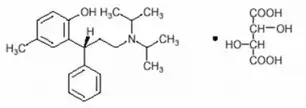 Таблетките детрол съдържат толтеродин тартрат. Активният толтеродин от част е антагонист на мускариновия рецептор. Химическото наименование на толтеродиновия тартрат е (R) -2- [3- [BIS (1-метилетил) -амино] 1-фенилпропил] -4- метилфенол [R- (R*R*)]-23dihydroxybutanedioate (1: 1) (сол). Емпиричната формула на толтеродинния тартрат е c 26 H 37 Не 7 и молекулното му тегло е 475,6. Структурната формула на толтеродинния тартрат е представена по -долу: