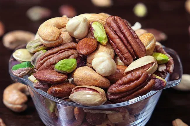 Вземете шепа от всякакъв вид, който харесвате. Просто се уверете, че са несолени. И се придържайте към размера на сервирането около унция. Ядките и семената имат здравословни мазнини, но също са с високо съдържание на калории. Добрият избор включва орехи шам -фъстъци фъстъци слънчогледови семена и кашу.