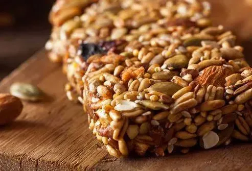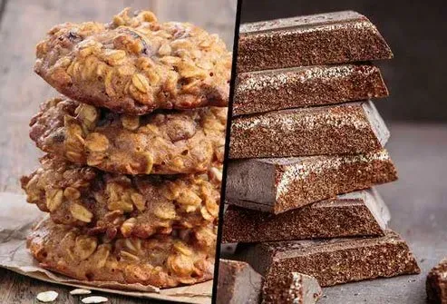 Това може да бъде добро изправяне на бисквитка, стига да проверите етикета на храненето. Уверете се, че вашият бар има някакъв протеин и фибри и не твърде много захар. Или посегнете към половин банан и шепа бадеми - и двата добри източници на магнезий минерал, който може да ви помогне да се навиете. Този комбо от плодове и ядки също има някакъв триптофан.