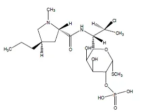 Клиндамицин фосфат е воден разтворим естер на полусинтетичния антибиотик, произведен от 7 (S) -хлоро-заместване на 7 (R) -хидроксилната група на родителския антибиотичен линкомицин.