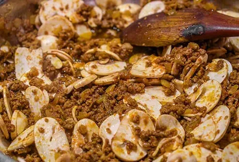 Смъртното говеждо месо е един от най -малко скъпите начини да се насладите на червено месо. Но ако добавите гъби към сместа, вероятно ще похарчите още по -малко за ястията си с говеждо месо (и също така ще увеличите здравния фактор). Изследванията показват, че бихте могли да спестите 20% в Taco Night у дома, ако използвате 50-50 смес от говеждо и гъби вместо цялото говеждо месо. Увеличете съотношението гъба към пчела и можете да спестите още повече.
