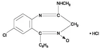 Хлордиазепоксид хидрохлорид е 7-хлоро-2-метиламино-5-фенил-3H-14-бензодиазепин 4-оксиден хидрохлорид. Безцветно кристално вещество е разтворимо във вода. Той е нестабилен в разтвора и прахът трябва да бъде защитен от светлина. Молекулното тегло е 336,22. Структурната формула на хлордиазепоксид хидрохлорид е както следва:
