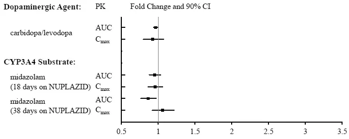 Няма ефект на пимаваннсерин върху фармакокинетиката на субстрата на Midazolam A CYP3A4 или Carbidopa/Levodopa, както е показано на фигура 2.