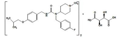 Nuplazid съдържа пимаванзерин атипичен антипсихотик, който присъства като пимаванзерин таррат сол с урея на химическото име N-[(4-флуорофенил) метил] -N- (1-метил-4-пиперидинил) -N '-[4- (2метилпропокси) фенил] метил]-(2R3R) -23-дихидроксибутанедиоат (2: 1). Pimavanserin tartrate е свободно разтворим във вода. Молекулярната му формула е (c 25 H 34 Fn 3 O 2 ) 2 • C. 4 H 6 O 6 и молекулното му тегло е 1005,20 (тартарат сол). Химическата структура е: