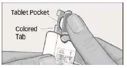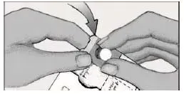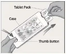 Стъпка 1. Натиснете твърдо и задръжте бутона на палеца, след което издърпайте пакета таблет (вижте Фигура А). Не натискайте таблета през пакета за таблети. Не отрязвайте и не разкъсвайте пакета за таблет.