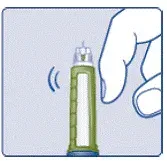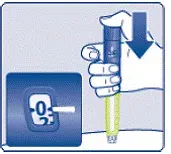 - Задръжте писалката с сочеща игла . Натиснете и задръжте в дозата, докато броячът на дозата не покаже 0. 0 трябва да се подрежда с показалеца на дозата.