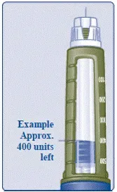 - Завъртете избраната доза или докато спре. Броячът на дозата ще съответства на броя на единиците инсулин, който е lef t in our pe n. Ако броячът на дозата показва 160 t, тук са на изток 16 0 un left in in in in the pen.