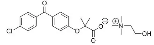 Трилипикс (фенофибрична киселина) е a липид regulating agent available as delayed release capsules for oral administration. Each delayed release capsule contains choline fenofibrate equivalent to 45 mg or 135 mg of fenofibric acid. The chemical name for choline fenofibrate is ethanaminium 2hydroxy-NNN-trimethyl 2-{4-(4-chlorobenzoyl)phenoxy] -2-methylpropanoate (1:1) with the following structural formula: