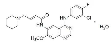 Дакомитиниб е перорален киназен инхибитор с молекулна формула на С 24 H 25 Clfn 5 O 2 • З. 2 O и молекулно тегло от 487,95 далтони. Химическото наименование е: (2e) -n- {4-[(3-хлоро-4-флуорофенил) амино] -7 метоксициназолин-6-ил} -4- (пиперидин-1-ил) но-2-енамиден монохидрат и структурната му формула е:
